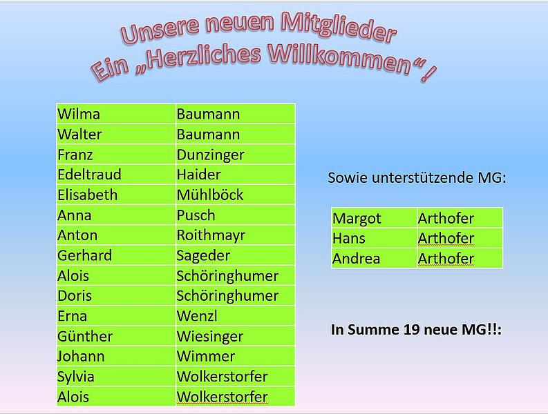 • Ein "Herzliches Willkommen" unseren neuen Mitgliedern 2025